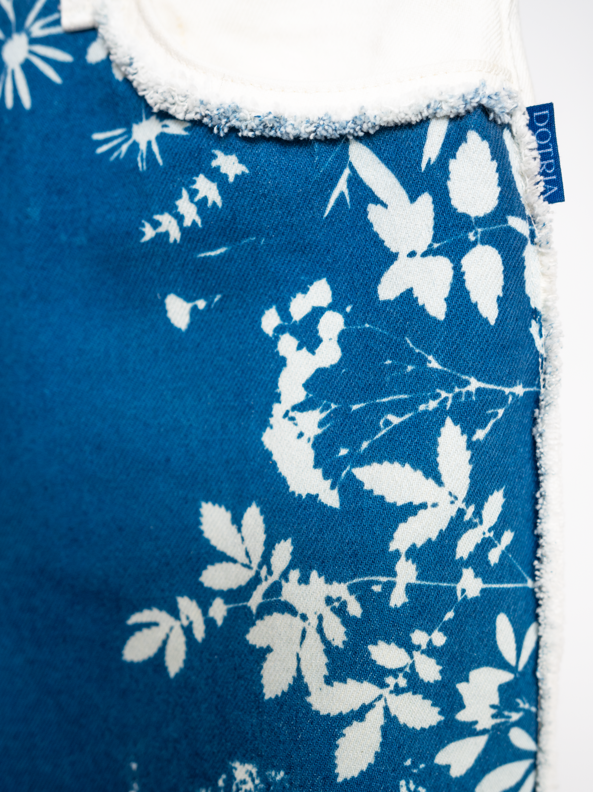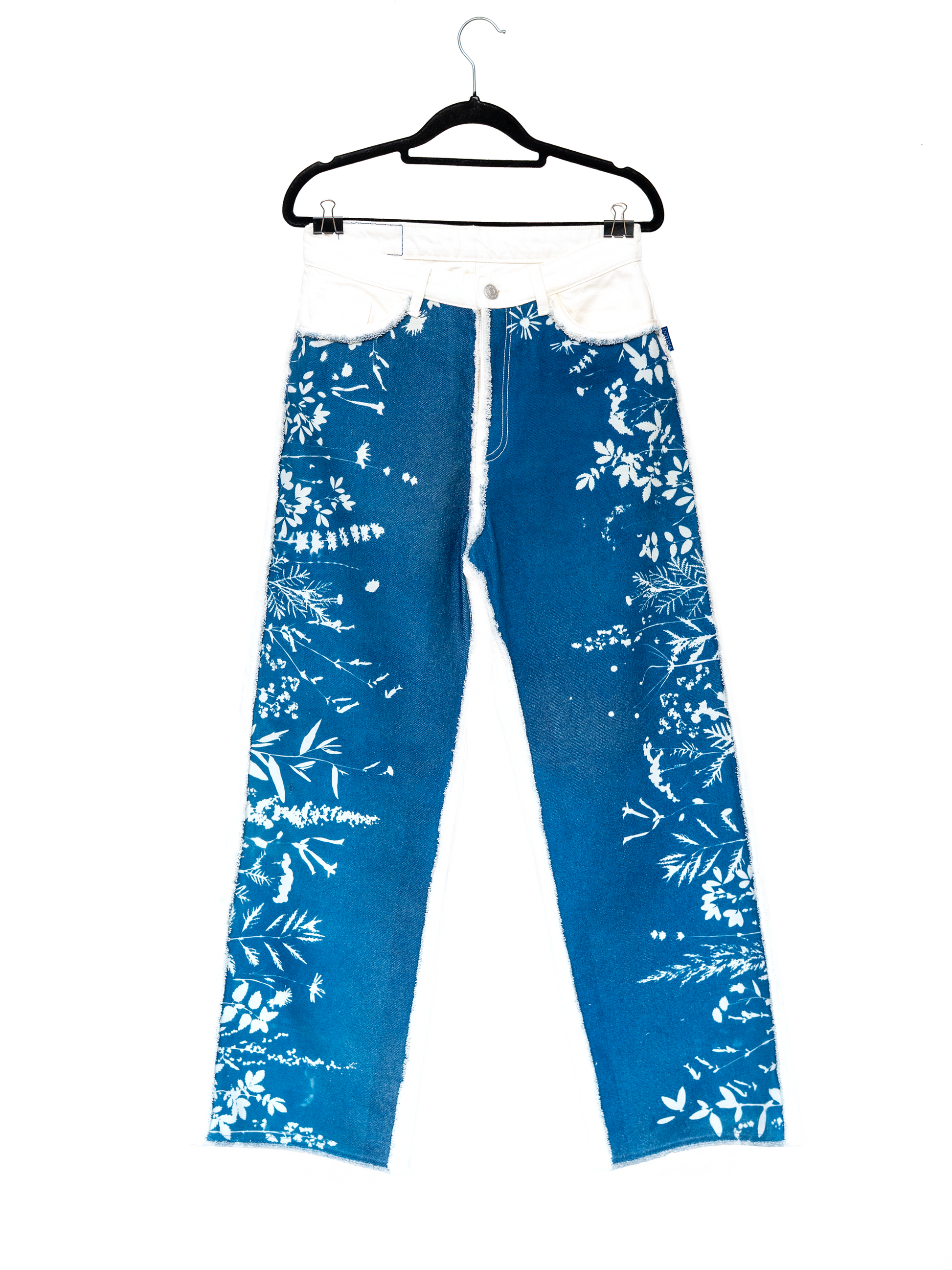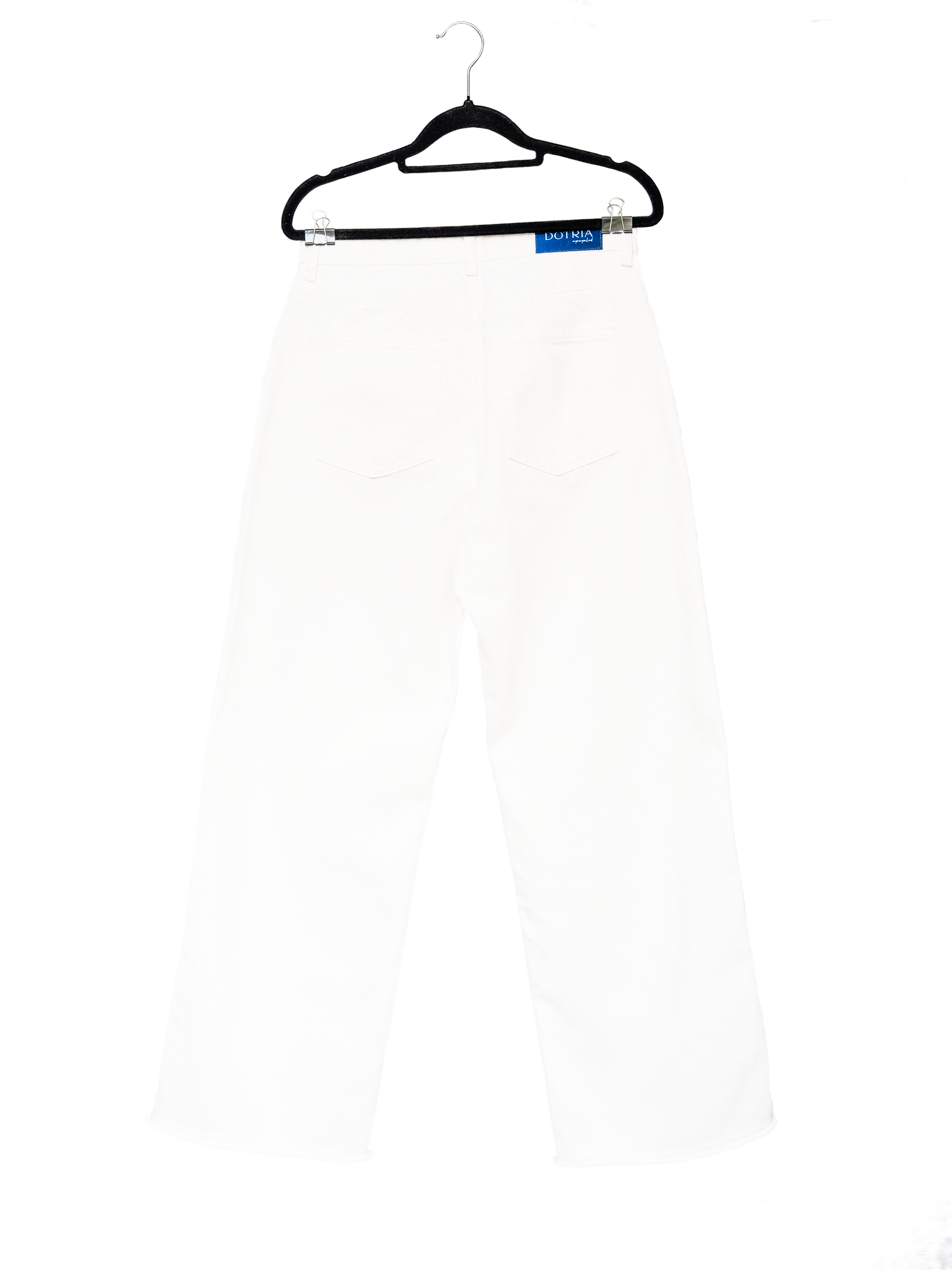 Białe jeansy z wysokim stanem cyjanotypia surowe wykończenie S