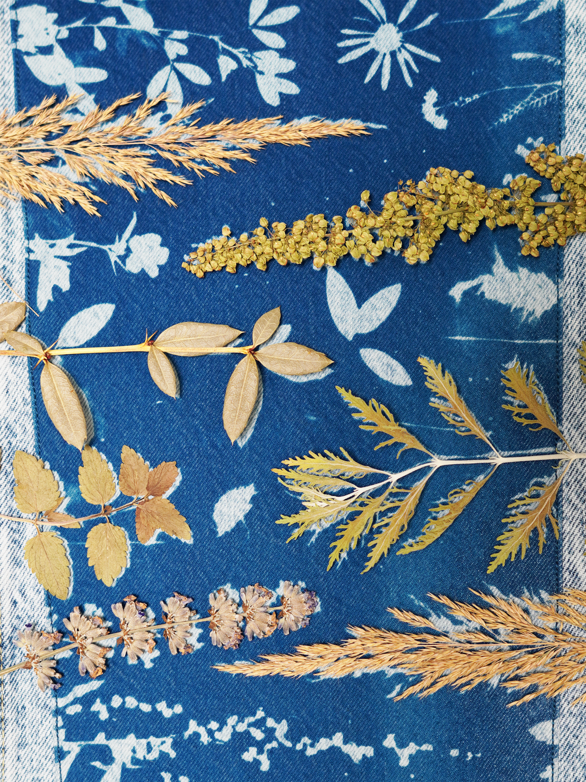 Nadruki wykonane metodą cyjanotypii są delikatne — z biegiem czasu i pod wpływem prania mogą tracić intensywność. To naturalny proces i część ich uroku.
