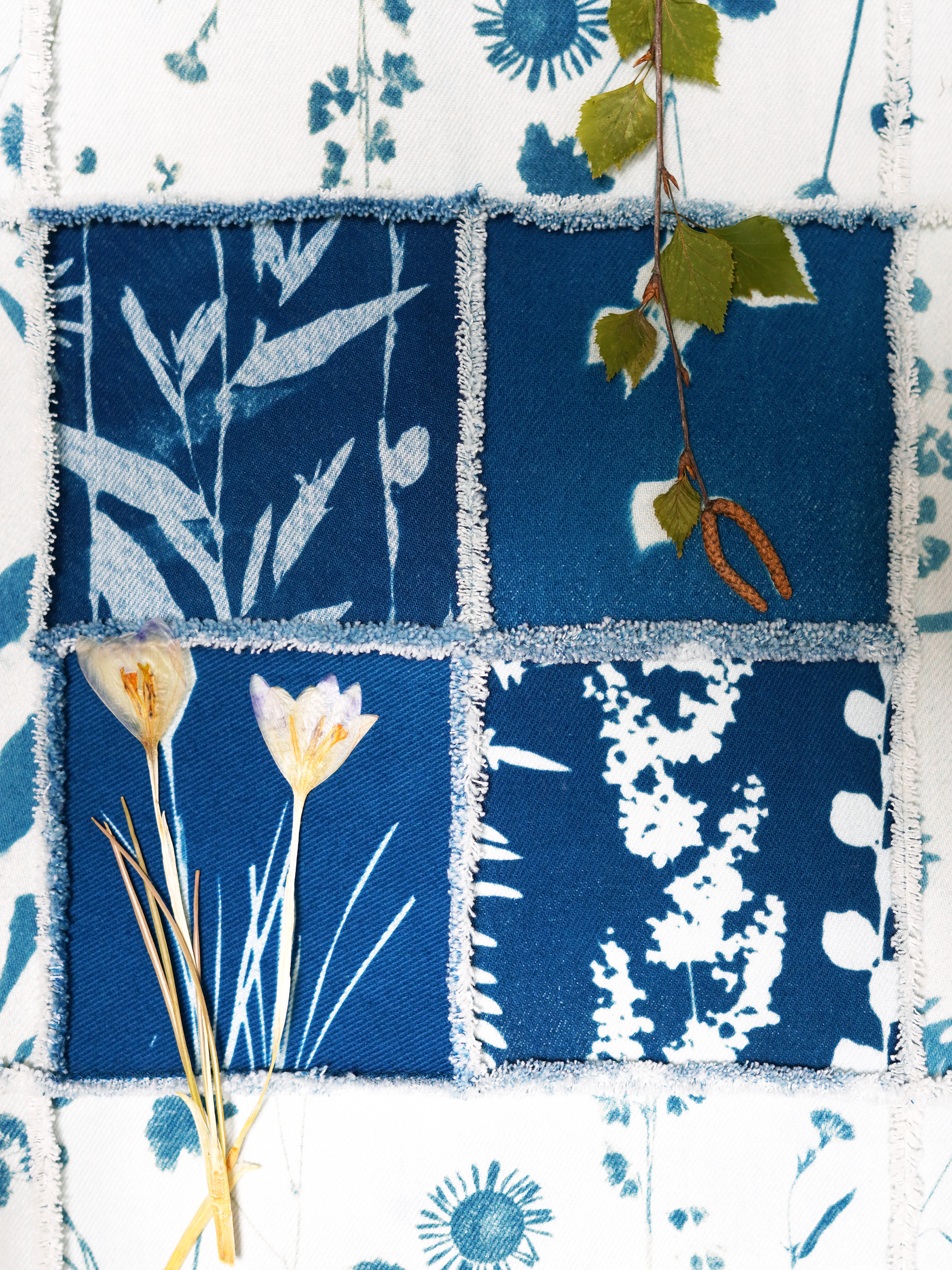 Nadruki wykonane metodą cyjanotypii są delikatne — z biegiem czasu i pod wpływem prania mogą tracić intensywność. To naturalny proces i część ich uroku.