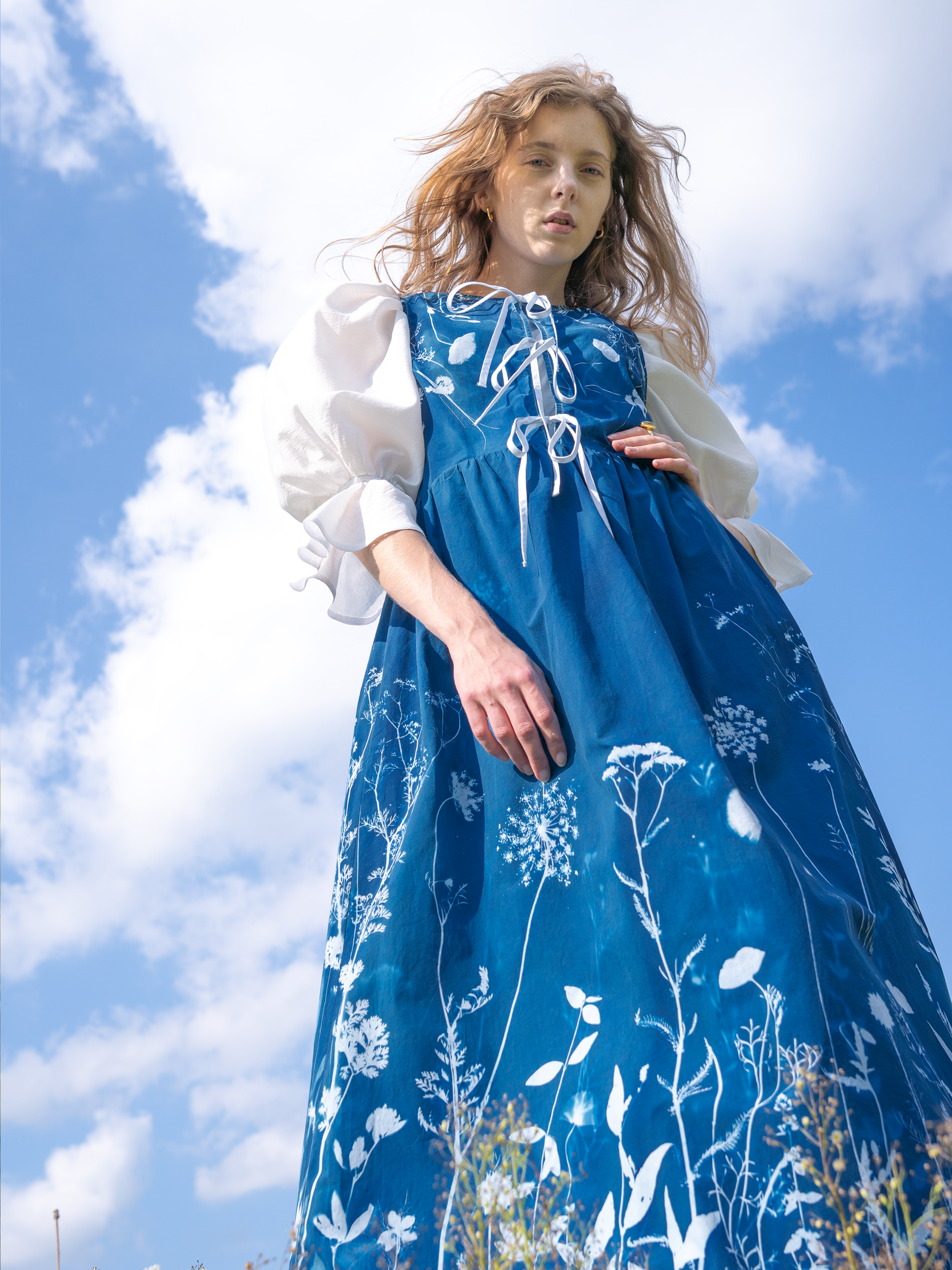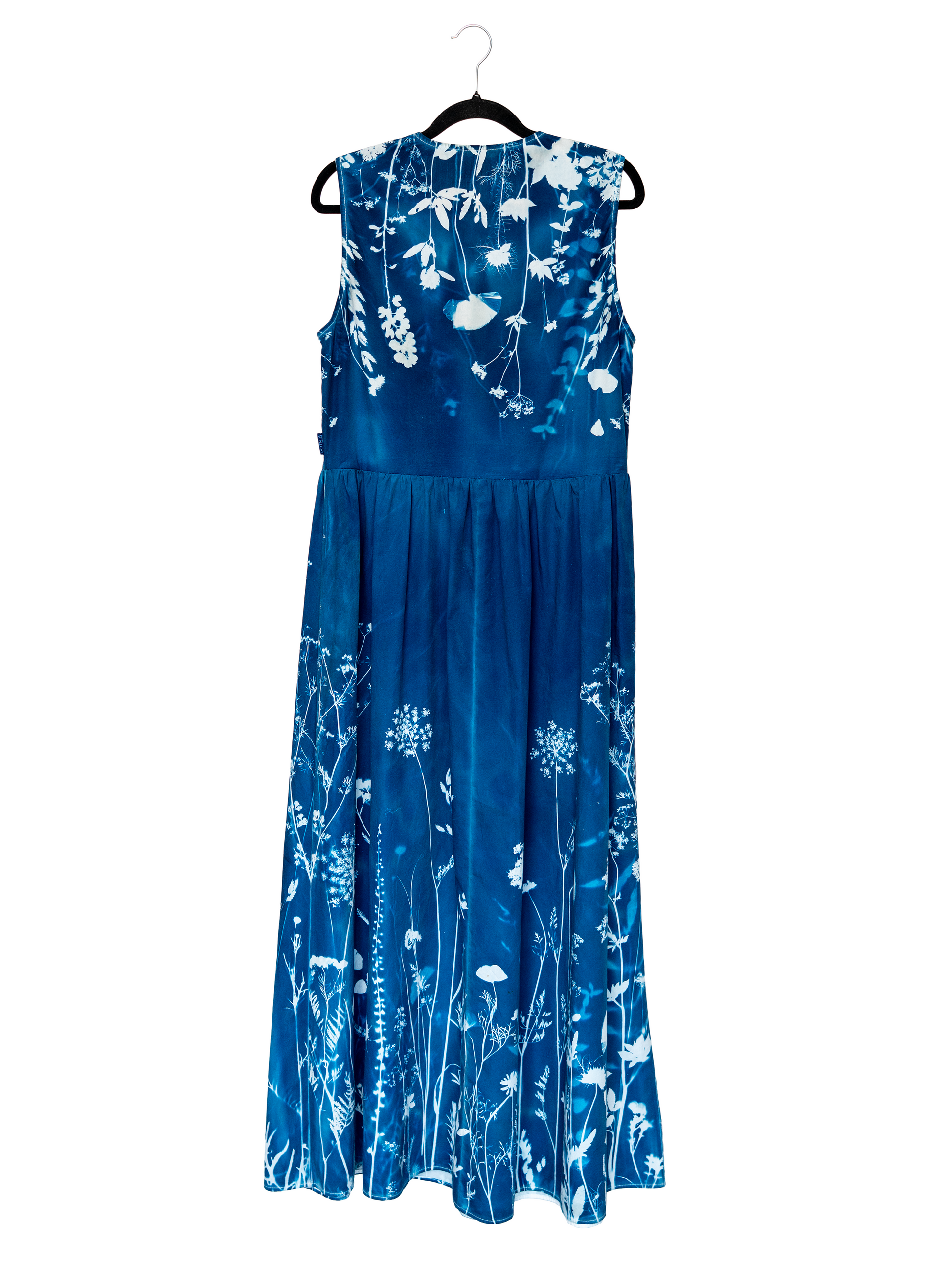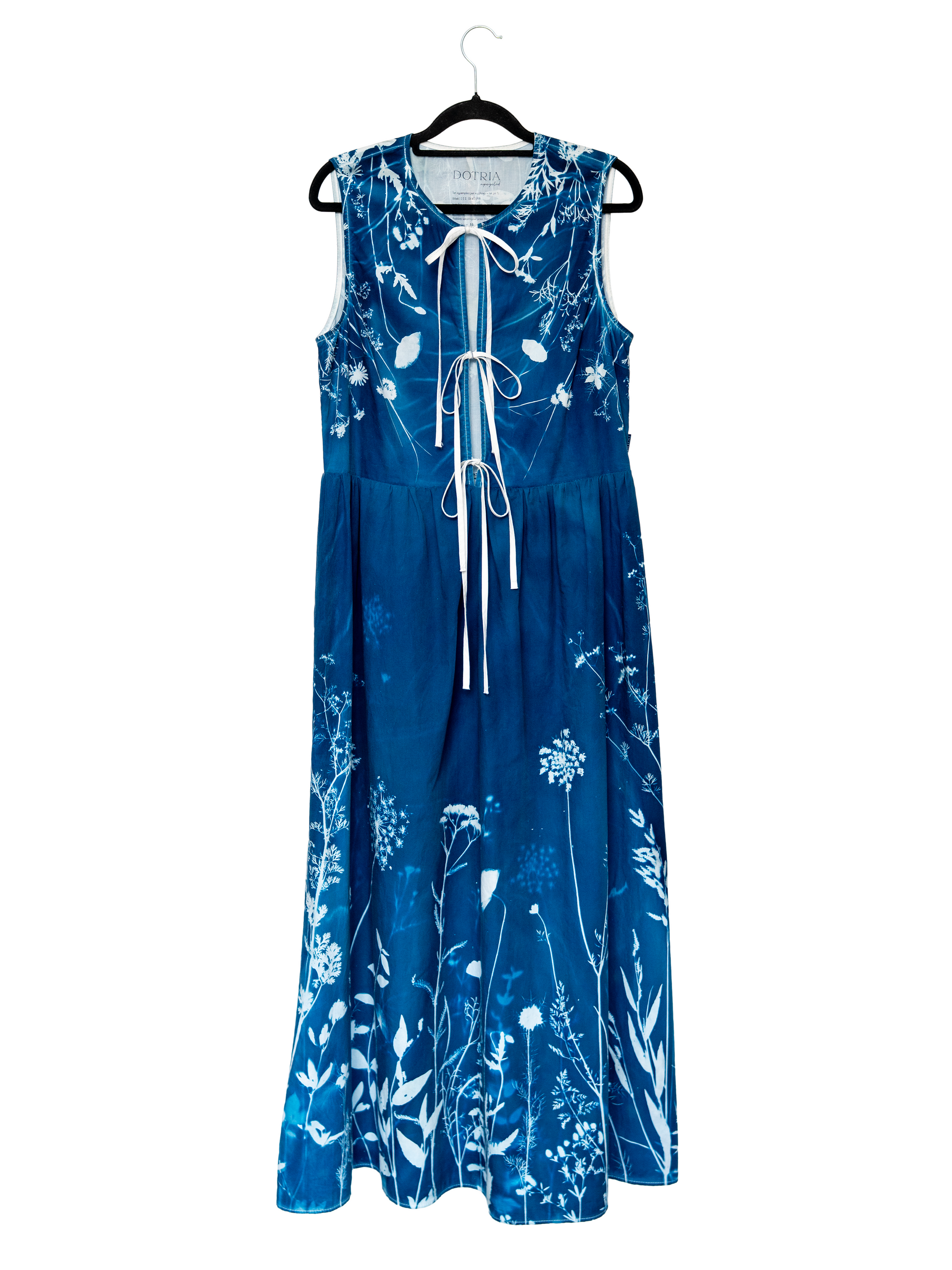 Sukienka maxi wiązana luźna cyjanotypia S-M