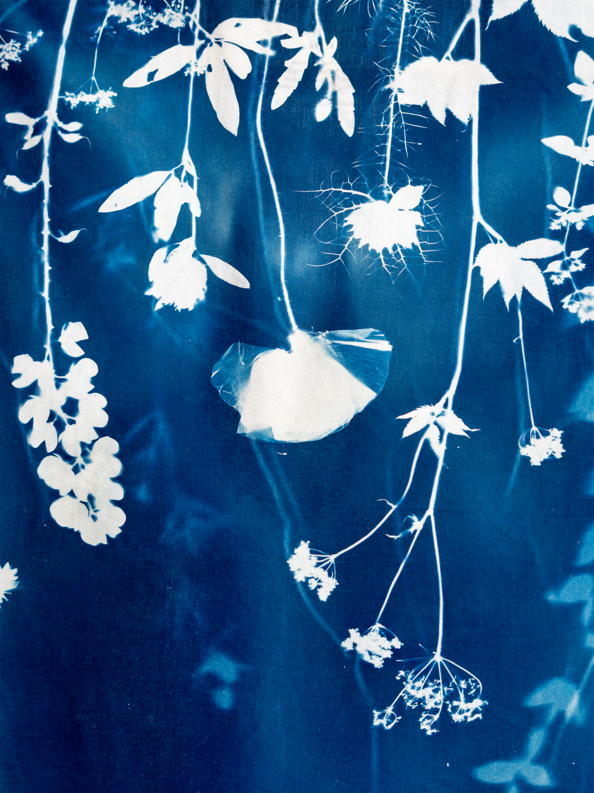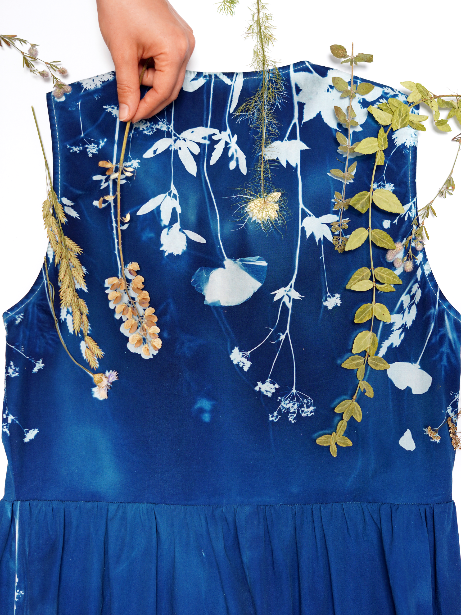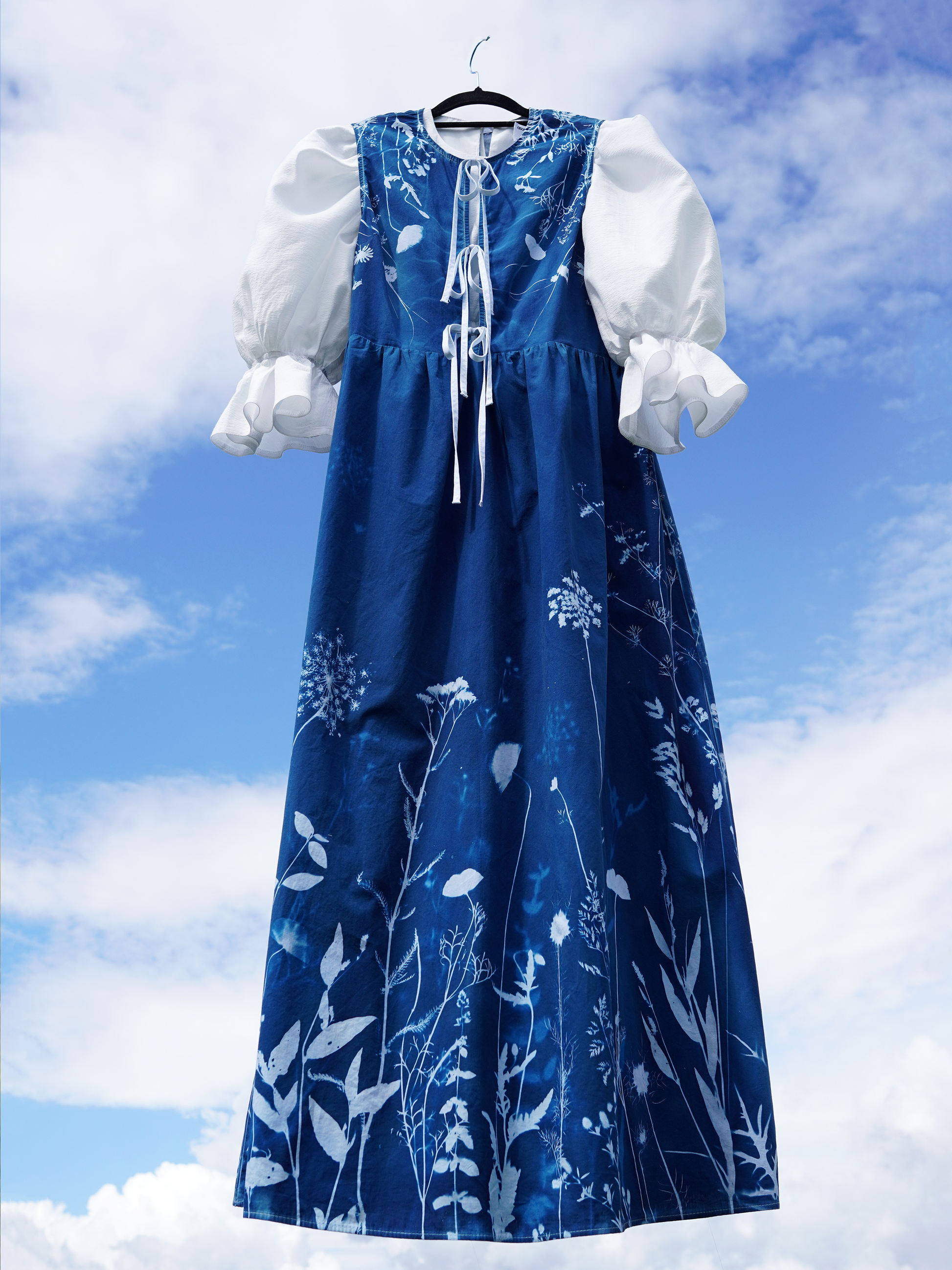 Sukienka maxi wiązana luźna cyjanotypia S-M